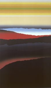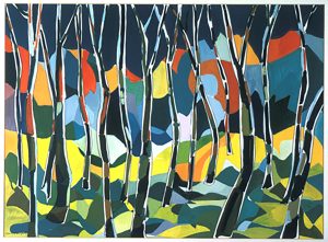 Three artworks from the SFCA’s Art in Public Places Collection: “Morning eyes” by Carlson Mun, “Pele’s Forest” by Guy Buffet, and “Clear Space” by Arthur Secunda. These artworks are currently installed at the State Attorney General’s office.