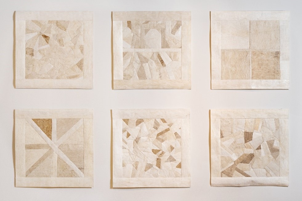 - Abigail Romanchak, “Kāhea, a call”, framed collagraph prints.