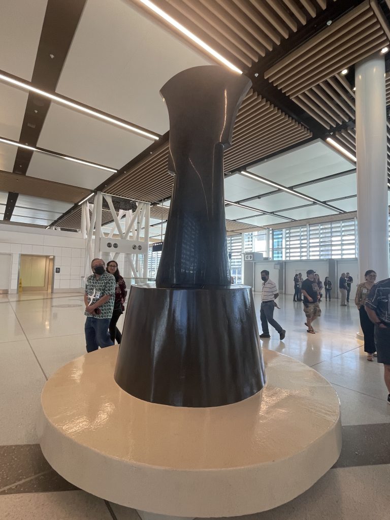 Commissioned works of art for the new Mauka Terminal at the Daniel K. Inouye International Airport (Honolulu) have been completed. Flooring motifs by Satoru Abe and sculptures by Sean Browne, Doug Young, and Mark Chai complete the collective effort to curate a terminal for the future with a contemporary Hawaiian sense of place reflecting the ingenuity of Hawaiian culture.
