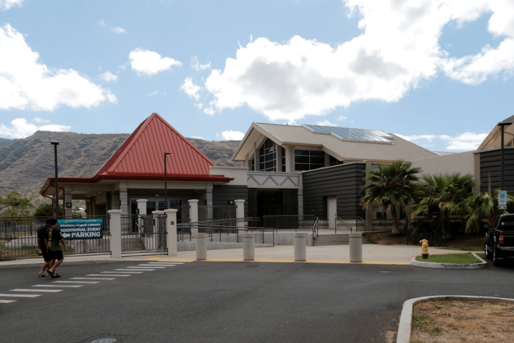 The Nānākuli Public Library opened in April 2018 to serve the Nānākuli and Mā‘ili communities. The library design was inspired by Hawaiian villages and includes an outdoor program area, meeting rooms, and a recording studio. Services include weekly keiki storytime sessions, ʻohana game nights, and computer classes. Learn more on the Hawaiʻi State Public Library System website: LibrariesHawaii.org/branch/nanakuli-public-library.