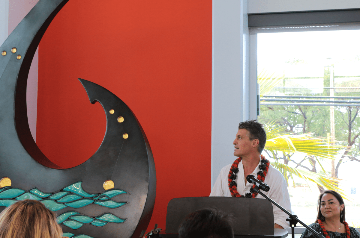 Speakers included Lieutenant Governor Sylvia Luke, Senator Cross Makani Crabbe (District 45, KoʻOlina, Nānākuli, Māʻili, Waiʻanae, Mākaha, Mākua), and City & County of Honolulu Neighborhood Board No. 36 (Nānākuli-Māʻili) Chair Samantha Decorte, Executive Director of the Hawai’i State Foundation on Culture and the Arts Karen Ewald, artist Scott Norwood Fitzel, and Nānākuli Public Library Branch Manager Kelsey Domingo. State Librarian of the Hawai’i State Public Library System Stacey Aldrich welcomed attendees. Georgette Stevens, from the office of Representative Cedric Gates (District 45, Wai‘anae, Mākaha) was also in attendance.