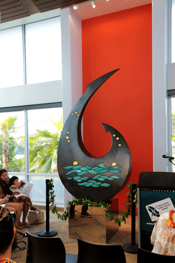 On Saturday, September 21, the sculpture “Mānaiakalani” by Scott Norwood Fitzel was dedicated at Nānākuli Public Library.