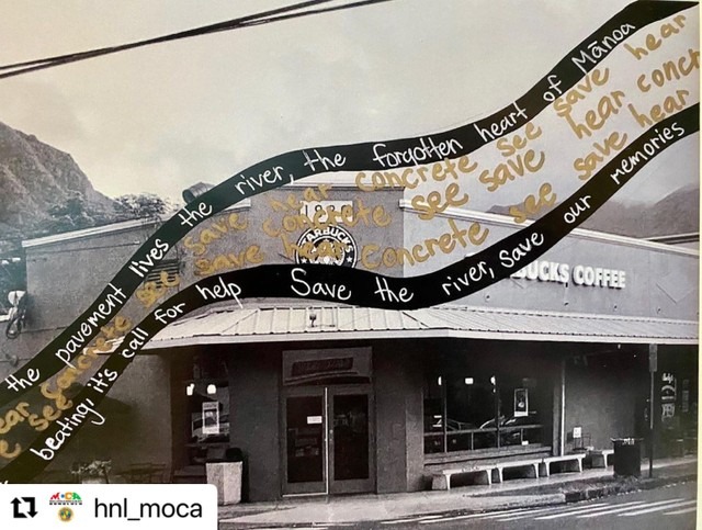 Students from Mānoa Elementary School worked with professional writer Laurel Nakanishi to create concrete and lyric poems as a part of the State Foundation on Culture and the Arts (SFCA) Artists-in-the-Schools program. After studying the history, geography, and moʻolelo of Mānoa, including visits from three kūpuna who grew up in the valley, students wrote lyric poems that expressed their relationship with Mānoa. Nakanishi then led the students in the creation of concrete poetry inspired by the work of Native Hawaiian photographer Kapulani Landgraf.”